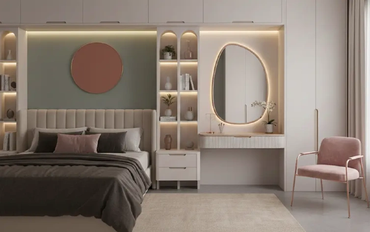 O dormitório planejado com linguagem delicada ou feminina trabalha cores suaves, iluminação acolhedora e detalhes decorativos bem dosados. Nichos, penteadeiras e iluminação indireta ajudam a compor o espaço de forma funcional e personalizada. O equilíbrio entre estética e praticidade permite que o quarto acompanhe mudanças de rotina e estilo ao longo do tempo, sem perder conforto ou organização.